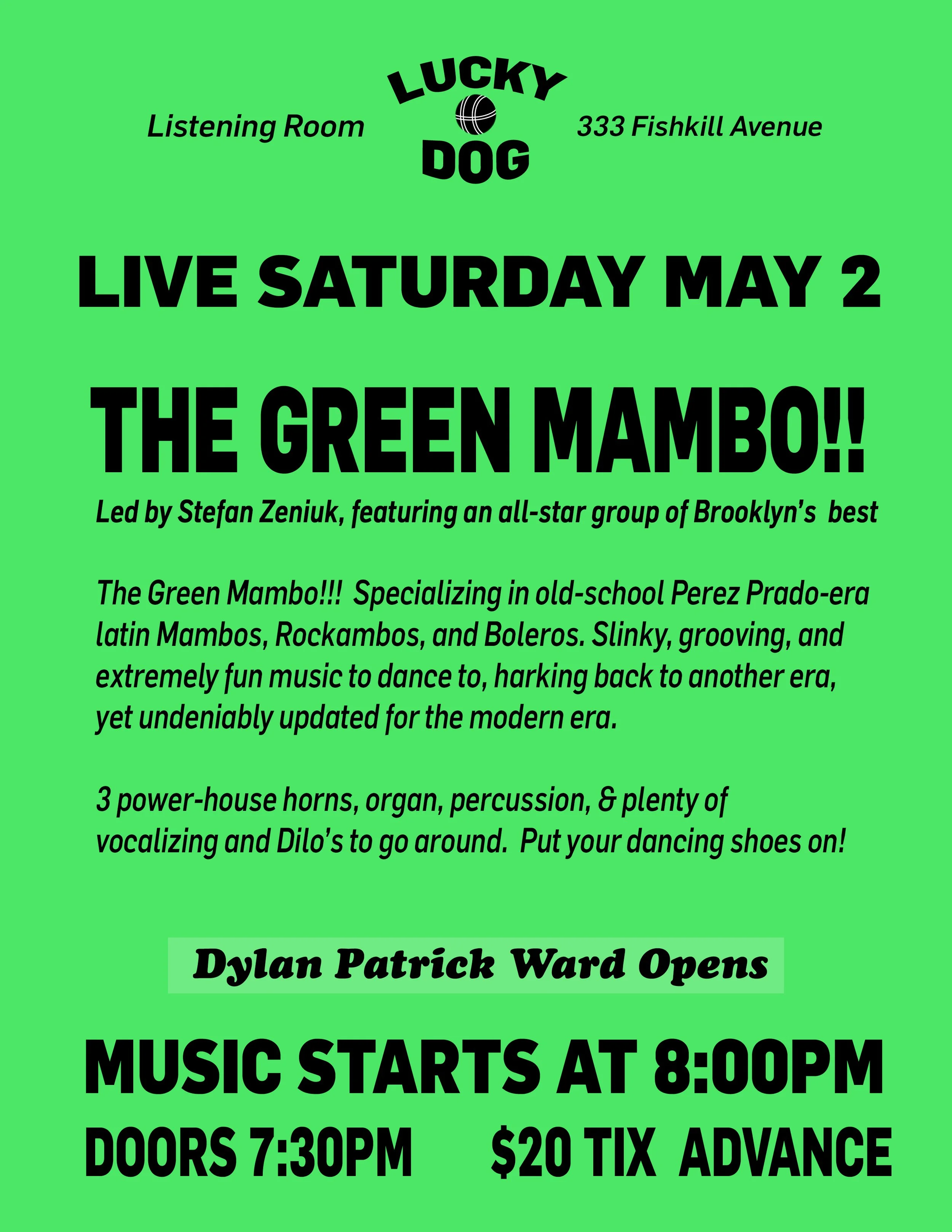 Specializing in old-school Perez Prado-era latin Mambos, Rockambos, and Boleros. Slinky, grooving, and extremely fun music to dance to, harking back to another era, yet undeniably updated for the modern era. 3 power-house horns, organ, percussion, and plenty of vocalizing and Dilo’s to go around.Led by Stefan Zeniuk, and featuring an all-star group of Brooklyn’s best, the band released their debut album in 2025 via Pinch Records.
